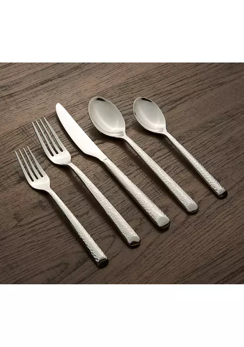 Crafted out of textured stainless steel, this flatware set merges sleek design with durability and practicality.