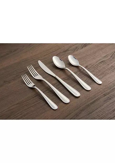 Crafted out of sturdy stainless steel, this flatware set merges sleek design with durability and practicality.