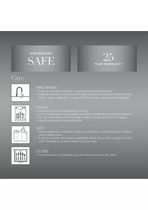 Crafted out of sturdy stainless steel, this flatware set merges sleek design with durability and practicality.