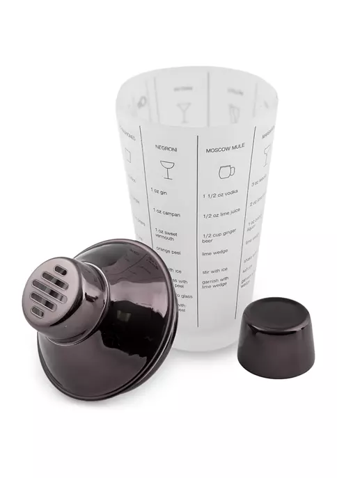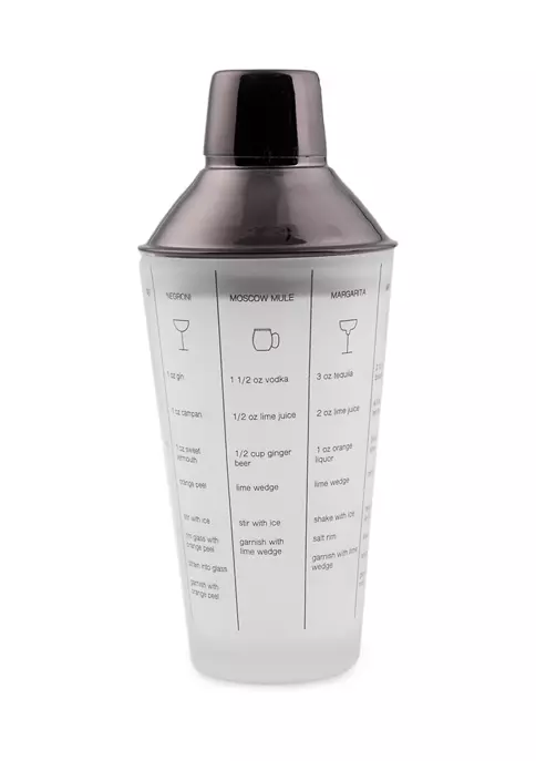 Frosted Glass Shaker Features Classic, Easy-to-Read Recipes and Measure Markings