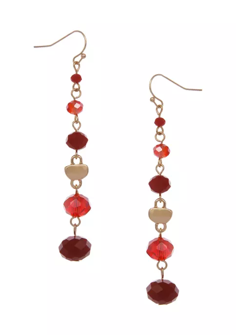 Gold-tone metal and various shades of red beads define these chic linear earrings from Erica Lyons.