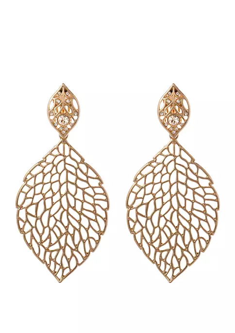 Meticulously-designed in gold-tone metal, these gorgeous clip earrings from Erica Lyons show off with filigree leaf drops.