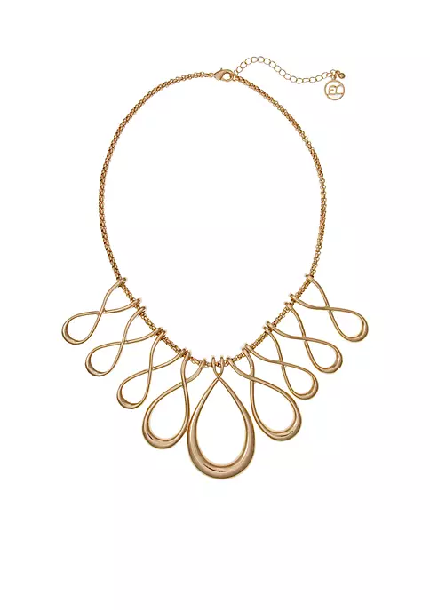 Polished to perfection, this striking gold-tone necklace features a front of infinity loops that create an effortlessly cool silhouette. Ready for any occasion, this necklace will be a frequent-flyer in your collection.