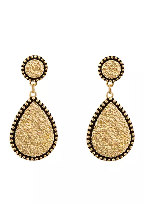 These gold-tone metal earrings are designed with a textured teardrop and post. Stay ultra-chic and savvy with this polished pair.