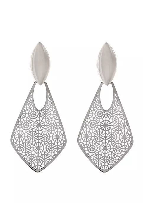 Cutout filigree textures add can’t-miss allure to these drop earrings from Erica Lyons, featured in a silver-tone clip design.