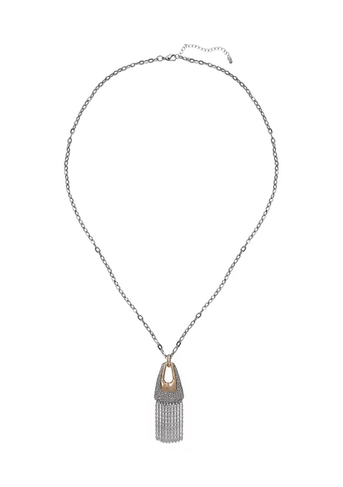 This textured pendant necklace by Erica Lyons comes with two-toned metal and a 36-inch chain with a classic antique finish.
