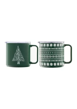Cambridge Silversmiths 2 Pack of 20 oz Stackable Green Tree Insulated Coffee Mugs