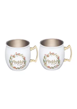 Cambridge Silversmiths 2 Pack of 20 oz White Holiday Wreath Moscow Mule Mugs