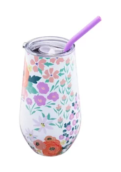Cambridge Silversmiths 16 Ounce White Floral Insulated Wine Tumbler