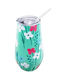 Cambridge Silversmiths 16 Ounce Mint Floral Insulated Wine Tumbler